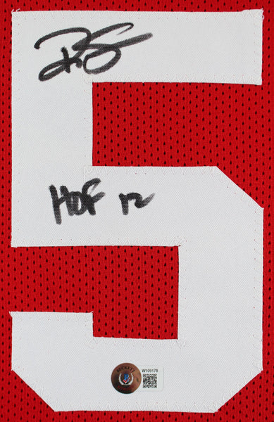 This Autographed Red Pro Style Jersey with the inscription of "HOF 12" has been Personally Signed by Ralph Sampson of the Houston Rockets. This item is 100% Authentic to include a hologram by Beckett Authentication Services. This item may come with the new Beckett Authentication hologram that has a scannable QR code rather than the traditional COA. If you would like to have a COA, you are welcome to reach out to Beckett for a printed certification once you receive your item. This is a BAS Witnessed Protection Program item which means a Beckett Authentication Service representative was present when this item was being signed. We conducted an autograph signing with Ralph Sampson where multiples of the same item were signed. While the photographs are representative of this item, the size, placement and strength of the signature may vary. Each item is hand signed, therefore, each autograph is unique. This item can be verified through BAS Witnessed. This is a X-Large sized, non-branded, custom-stitched Jersey.