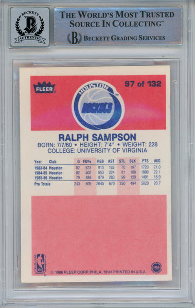 Ralph Sampson Signed 1986-87 Fleer #97 Rookie Card Beckett 10 Slab 42931 The number in the listing title is just an inventory sku for our records and is not the authentication number. This is the exact item that you will receive so please see pictures for condition. This is a trading card that was personally autographed by Ralph Sampson. This has been professionally slabbed by Beckett Authentication Services (BAS) and includes a certificate of authenticity from Denver Autographs.
