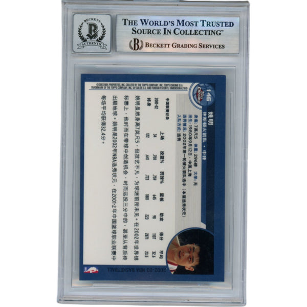Yao Ming Signed Houston Rockets 2002 Topps Chrome #146B Chinese 10 Beckett 48691