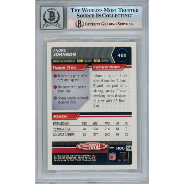 Andre Johnson Autographed 2003 Topps Total #460 10 Grade Card Beckett 46499