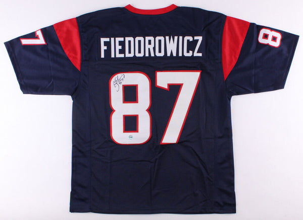 Custom on-field style jersey. Everything sewn on, size XL. Hand-signed in black felt-tip pen by C.J. Fiedorowicz. The autograph includes an official Fiterman Sports Group hologram for authenticity purposes.Authentication: Fiterman Hologram Save on Shipping 2nd & 3rd Items ship free !