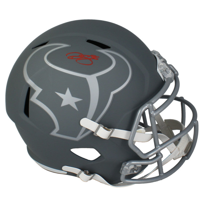 Dalton Schultz Autographed (in Red) Houston Texans Slate Speed Full Size Helmet Beckett WitnessedThis Houston Texans 'Slate' full size replica Riddell Speed helmet has been personally hand-signed by Dalton Schultz. It comes with an individually numbered, tamper-evident hologram from Beckett Authentic. To ensure authenticity, the hologram can be reviewed online. This process helps to ensure that the product purchased is authentic and eliminates any possibility of duplication or fraud.