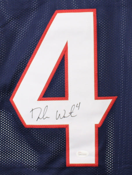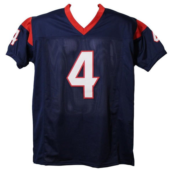 Deshaun Watson Autographed Houston Texans Custom XL Blue Jersey JSA 22314 This is a custom size XL blue jersey with sewn on name and numbers that was personally autographed by Deshaun Watson. This jerseyincludes a certificate of authenticity from James Spence Authentication (JSA) and Denver Autographs.