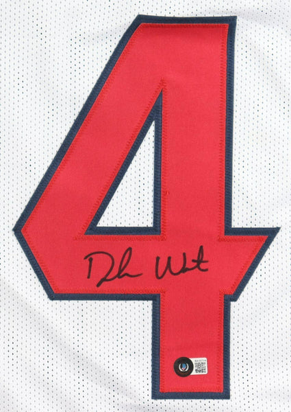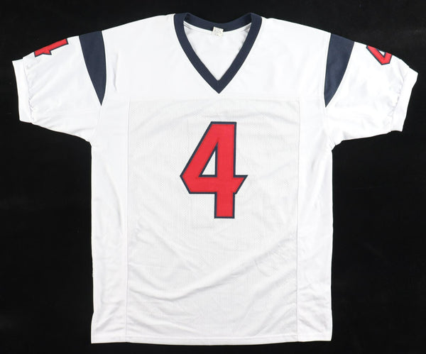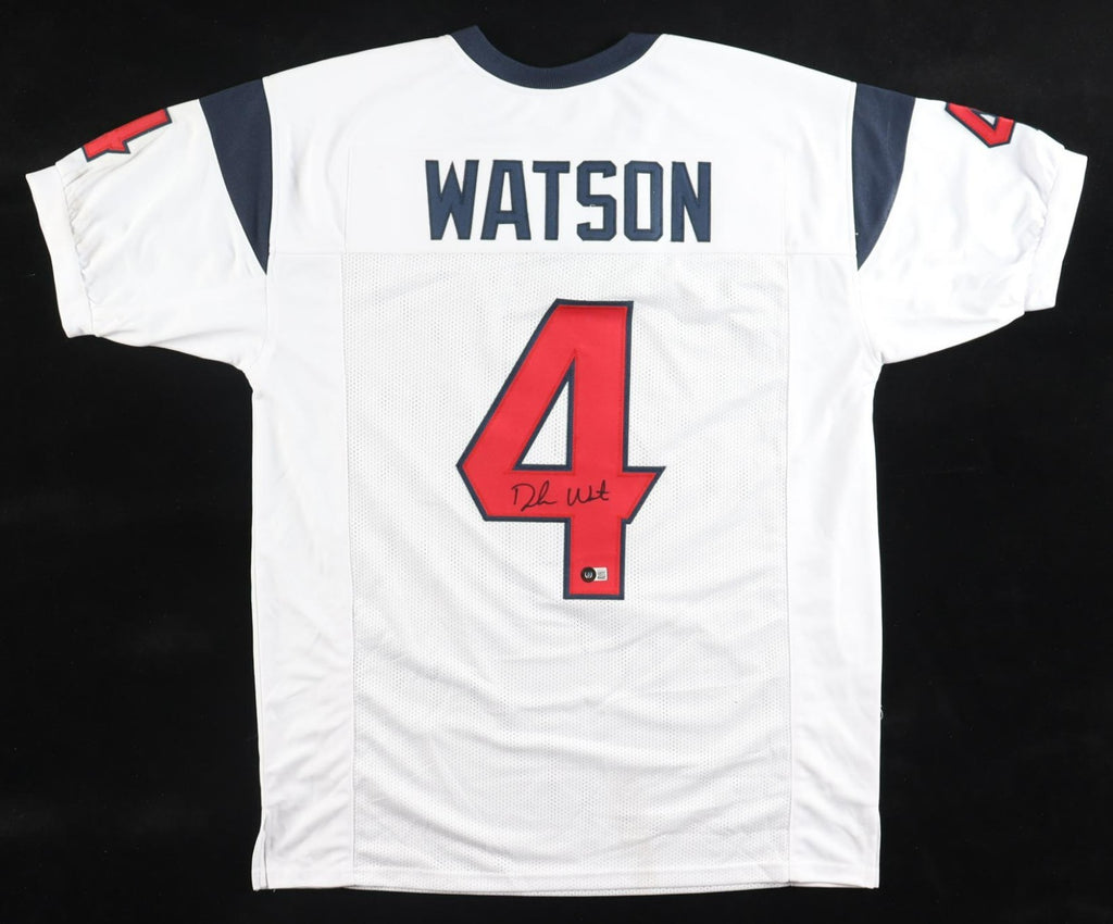 Custom On-Field Style Jersey. Everything is sewn on, size XL. Hand-signed by Deshaun Watson.The autograph includes an official Beckett Authentication Services serially numbered scannable hologram and QR Code card for authenticity purposes.Authentication: Beckett Hologram with Scannable QR Code card