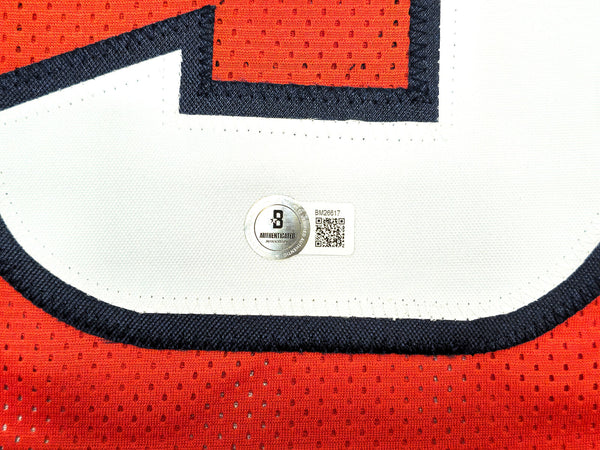 This is a Red Jersey that has been hand signed by Tank Dell. This is a custom jersey with no name brand. The approximate size is XL. It has nice sewn in name and numbers. This item has been certified authentic by Beckett Authentication (BAS) and comes with their tamper-proof QR Code sticker that can be verified on beckett-authentication.com.