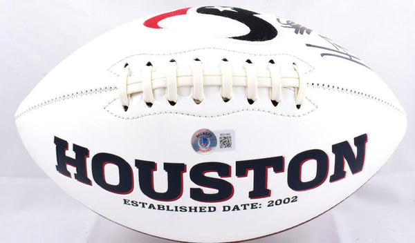 JJ Watt Autographed Houston Texans Logo Football-Beckett W Hologram *Black This is a Hand Autograph of JJ Watt on a Houston Texans Logo Football. This item has a Beckett Witnessed Authentication, which comes with a Beckett #'ed hologram and a QR code for verification. You can view this item on the Beckett website and it shows when and where the item was signed. It was signed either at a public autograph appearance or a private signing. This is a stock photo of the item. Although you may not receive this exact item, the item you receive is virtually identical and brand new in great shape.