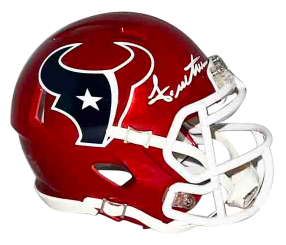 John Metchie III, wide receiver for the Houston Texans, has hand signed this Texans Riddell Speed Flash mini helmet at a private signing. This item is authenticated by Beckett Authentication Services and was signed in the presence of one of their representatives. Their tamper-evident hologram featuring a QR code and serial number is on the item. The authenticity can be verified online by entering the serial number or scanning the QR code.Item pictured may not be the exact item you will receive. It will be similar quality, and we guarantee your satisfaction.