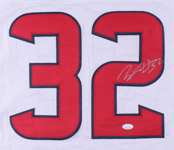 Custom on-field style jersey. Everything is sewn on, size XL. Hand signed in silver paint pen by Lonnie Johnson Jr. The lot / autograph(s) includes an official James Spence Authentication (JSA) hologram and matching COA for authenticity purposes. The signing of this item was witnessed by JSA.Authentication: JSA COA