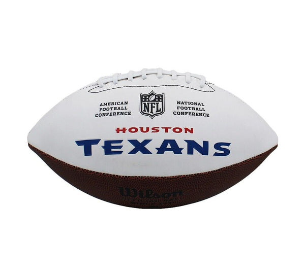 A Houston Texans Embroidered White NFL Football hand signed by Nico Collins. The item and signature are in excellent condition. Nico was drafted into the NFL in Round 3 pick 89. Jake is a Wide Receiver. AUTHENTICATION: The item is accompanied by a JSA Certificate of Authenticity - Serial Numbered and Databased Hologram.