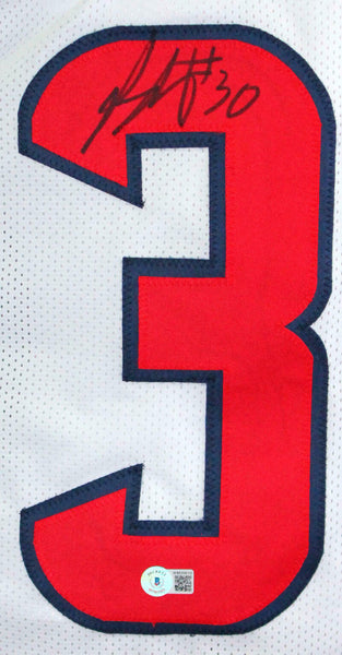 Phillip Lindsay Autographed White Pro Style Jersey-Beckett W Hologram THIS IS NOT AN NFL JERSEY. THIS HAS NO TAGS, NO LOGOS, NO EMBLEMS. This is a Hand Autograph of Phillip Lindsay on a custom made (Non Name Brand) authentic style jersey with stitched letters and numbers. This item has a Beckett Witnessed Authentication, which comes with a Beckett numbered hologram and a generic Beckett certificate of authenticity. You can view this item on the Beckett website and it shows when and where the item was signed. It was signed either at a public autograph appearance or a private signing. This is a stock photo of the item. Although you may not receive this exact item, the item you receive is virtually identical and brand new in great shape. Jersey Size is XL.