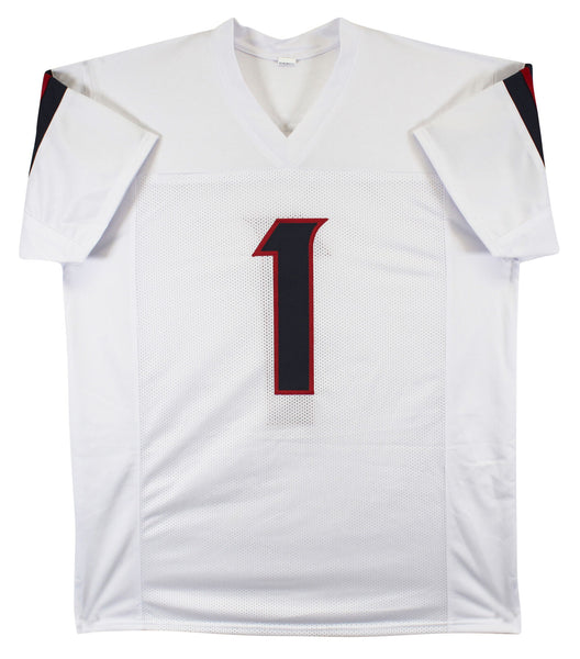 This Autographed White Pro Style Jersey has been Personally Signed by Stefon Diggs of the Houston Texans. This item is 100% Authentic to include a hologram by Beckett Authentication Services. This item will come with an affixed Beckett Authentication Services (BAS) authentication sticker, which includes a scannable QR code to verify authenticity. Please note that Beckett no longer provides serial-numbered COA cards, and the attached BAS sticker will serve as the complete authentication for this item. This is a BAS Witnessed Protection Program item which means a Beckett Authentication Service representative was present when this item was being signed. We conducted an autograph signing with Stefon Diggs where multiples of the same item were signed. While the photographs are representative of this item, the size, placement and strength of the signature may vary. Each item is hand signed, therefore, each autograph is unique. This item can be verified through BAS Witnessed. This is a X-Large sized, non-branded, custom-stitched Jersey.
