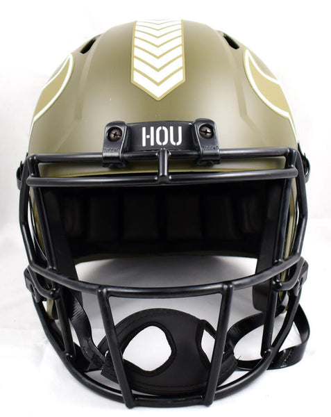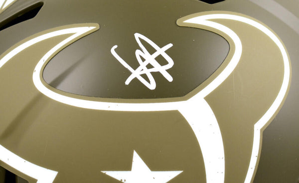 Will Anderson Autographed Houston Texans F/S Salute to Service Speed Helmet - Fanatics *White This is a hand autograph of Will Anderson Houston Texans on a Riddell Football Full Size Salute to Service Speed Replica Helmet. This item has a Fanatics Authentication, which comes with a numbered sticker hologram and a QR code for verification. You can view this item on Fanatics website, it shows the item was signed. It was signed either at a public autograph appearance or a private signing. This is a stock photo of the item. Although you may not receive this exact item, the item you receive is virtually identical and brand new in great shape.