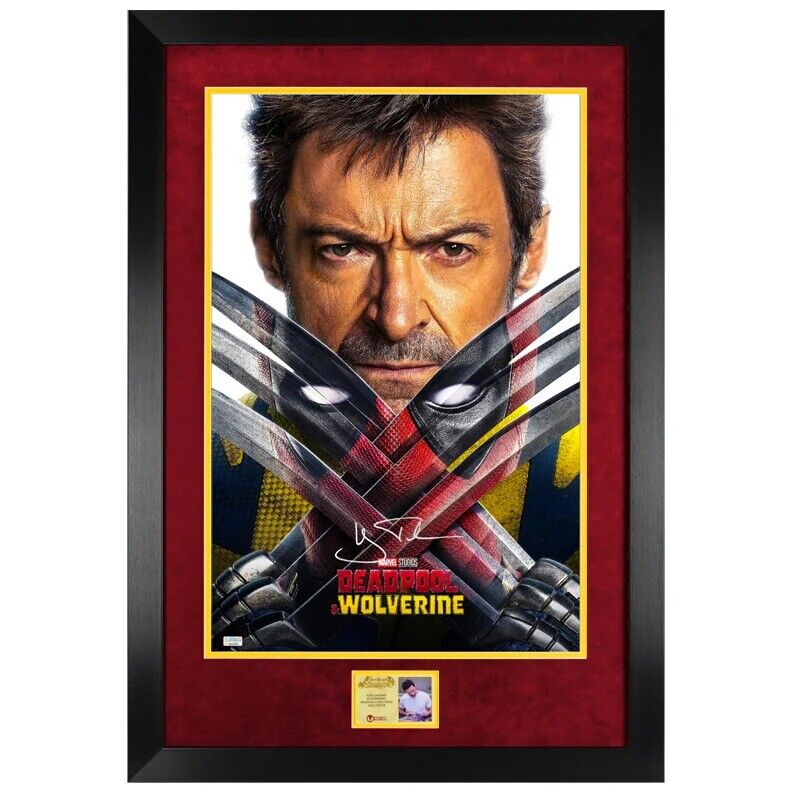 Celebrity Authentics is the exclusive autograph partner of Mel Gibson. Please be aware most other online autographs purported to be Mr. Gibson's are forgeries. Mr. Gibson has only signed with Celebrity Authentics so be sure the item you choose is affixed with the Celebrity Authentics Authentication Hologram for his genuine signature.This rare 2024 Deadpool & Wolverine 16x24 Poster (approximately 33"x 23" framed) has been personally autographed by Logan himself, Hugh Jackman during his exclusive signing with Celebrity Authentics! Recovering from his injuries (Hugh Jackman), better known as Wolverine, crosses paths with the merc with a mouth, Deadpool, who team up to defeat a common enemy. Ships affixed with Celebrity Authentics serial-numbered Authentication hologram and includes Celebrity Authentics Certificate of Authenticity featuring picture of Hugh signing poster. Framing: Photo is meticulously dry mounted and framed using acid free backing and mat boards with white core for the finest in presentation. UV protective glass with precision cut moulding are used for smooth, clean frame edges, hand assembled in our studio. Additionally, a protective back cover is used to seal the piece with corner bumpers applied to protect your walls, providing adequate air flow. A hanger is affixed to complete the finished collectible. Each framed photo is carefully wrapped for shipping with double protective corners and cushioning to help ensure the item's safe arrival. Celebrity Authentics Framing Studios - acclaimed as the industry's finest! Please note: with multiples signed by the actor, a sample photo is used from stock to represent what you will receive. Exact autograph size and placement may vary.