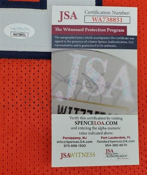 This autographed jersey has been personally hand-signed by former member of the Illinois Fighting Illini Men's Basketball Team, Nick Anderson. When signing, Anderson inscribed "Mr. Basketball" along with his signature.This autograph is certified by James Spence Authentication's (JSA) Witnessed Protection Program. That means that a JSA representative was present when this item was signed. It comes with the numbered hologram and matching Certificate of Authenticity.Custom on-field style jerseys are a more affordable option for autograph seekers. These jerseys do not have any brand name or tags and are made in the Philippines. They feature stitched on names and numbers and are made to look very similar to the on-field jerseys that the players wear. These custom jerseys are very commonly used in the memorabilia industry.
