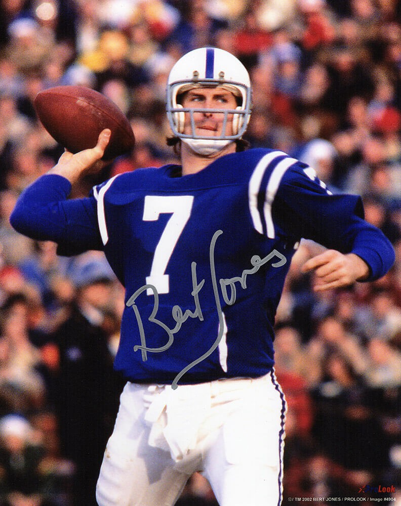 Bert Jones signed Colts blue jersey passing action 8x10 photo. Item comes with a Schwartz Sports Memorabilia tamper-proof numbered hologram and Certificate of Authenticity which can be verified online.