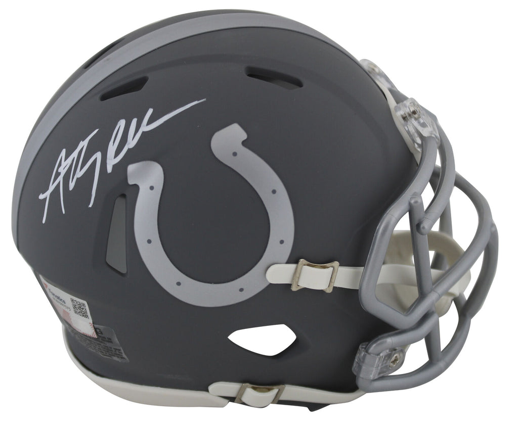 This Autographed Alternate Slate Speed Mini Helmet has been Personally Signed by Anthony Richardson of the Indianapolis Colts. This item is 100% Authentic to includes a numbered hologram by Fanatics. We conducted an autograph signing with Anthony Richardson where multiples of the same item were signed. While the photographs are representative of this item, the size, placement and strength of the signature may vary. Each item is hand signed, therefore, each autograph is unique. This item can be verified through Fanatics.