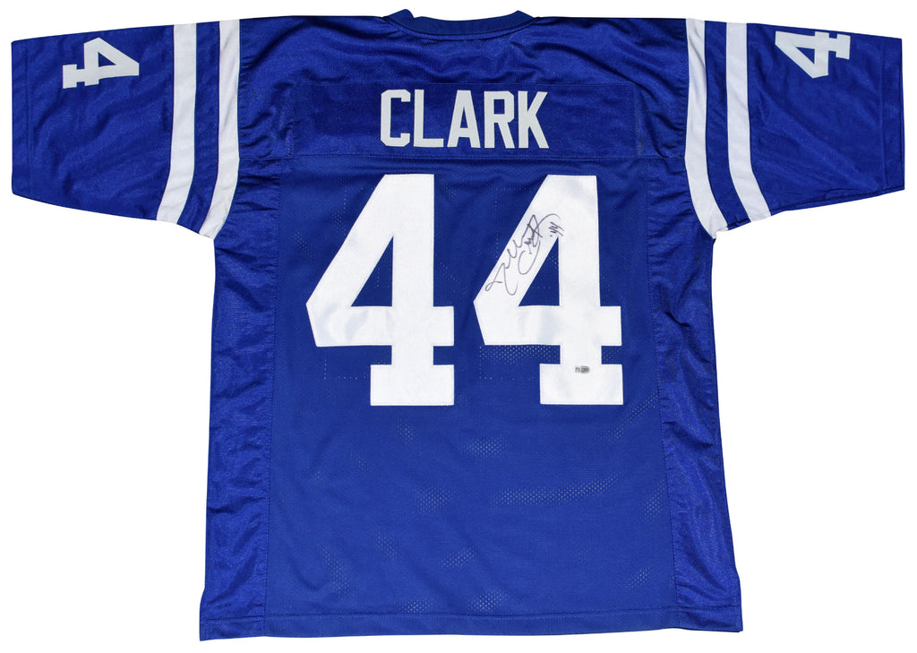 Dallas Clark, former Pro Bowl tight end for the Indianapolis Colts, has hand signed this blue custom jersey at a private signing. Jersey is size XL and all letters/numbers are sewn-on. This item comes with a serial-numbered hologram from Fanatics Authentic, one of the leaders in the industry. The authenticity can be verified online by entering the serial-number. A Fanatics Authentic information card is also included.Item pictured may not be the exact item you will receive. It will be similar quality, and we guarantee your satisfaction.