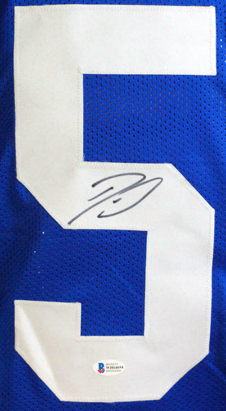 Darius Leonard Autographed Blue Pro Style Jersey -Beckett W *Black THIS IS NOT AN NFL JERSEY. THIS HAS NO TAGS, NO LOGOS, NO EMBLEMS. This is a hand autographed Darius Leonard custom made (non name brand) Authentic Style Jersey with stitched letters and numbers. This item has a Beckett Witness Authentication, which comes with a numbered and a matching Certificate of Authenticity. You can view this item on the Beckett website, it shows when and where the item was signed. It was signed either at a public autograph appearance or a private signing. This is a stock photo of the item. Although you may not receive this exact item, the item you receive is virtually identical, brand new , and in great shape. Jersey size is XL.