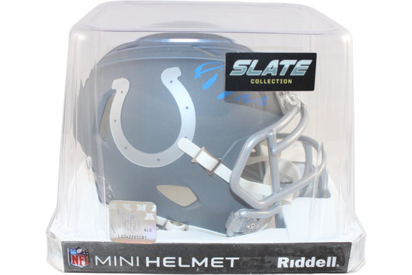 The number in the listing title is just an inventory sku for our records and is not the authentication number. The item pictured is a stock photo unless otherwise noted. This is an Indianapolis Colts Slate Mini Helmet that was personally autographed by DJ Giddens. Includes a certificate of authenticity from Beckett Authentication Services (BAS) and Denver Autographs.