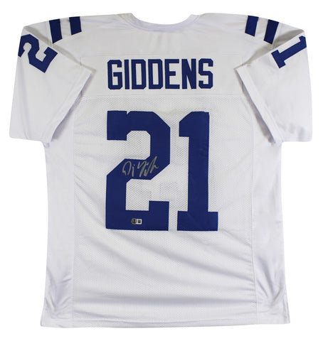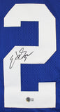 This Autographed Blue Pro Style Jersey has been Personally Signed by Edgerrin James of the Indianapolis Colts. This item is 100% Authentic to include a hologram by Beckett Authentication Services. This item will come with an affixed Beckett Authentication Services (BAS) authentication sticker, which includes a scannable QR code to verify authenticity. Please note that Beckett no longer provides serial-numbered COA cards, and the attached BAS sticker will serve as the complete authentication for this item. This is a BAS Witnessed Protection Program item which means a Beckett Authentication Service representative was present when this item was being signed. We conducted an autograph signing with Edgerrin James where multiples of the same item were signed. While the photographs are representative of this item, the size, placement and strength of the signature may vary. Each item is hand signed, therefore, each autograph is unique. This item can be verified through BAS Witnessed. This is a X-Large sized, non-branded, custom-stitched Jersey.