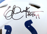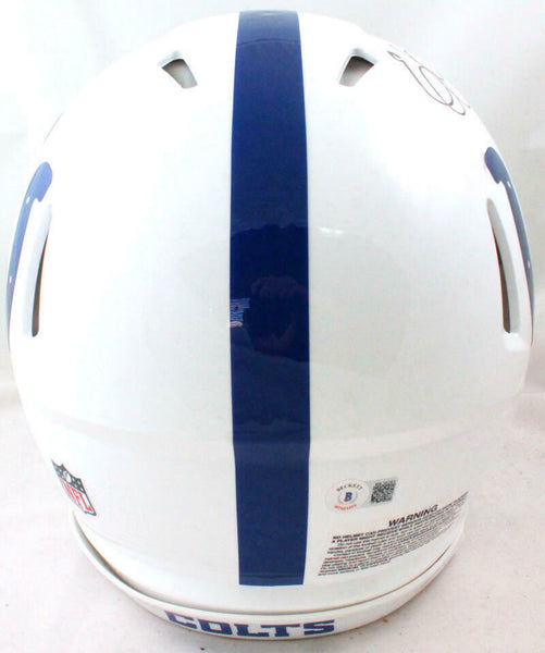 Eric Dickerson Signed Colts Speed Authentic Helmet w/HOF- Beckett W Hologram This is an Eric Dickerson of the Colts hand autographed Riddell football Full Size Speed Authentic helmet. This item is inscribed with HOF. This item has a Beckett Witnessed Authentication, which comes with a numbered sticker hologram and a QR code for verification. You can view this item on the Beckett Authentication website, it shows when and where the item was signed. It was signed either at a public autograph appearance or a private signing. This is a stock photo of the item. Although you may not receive this exact item, the item you receive is virtually identical, brand new, and in great shape.