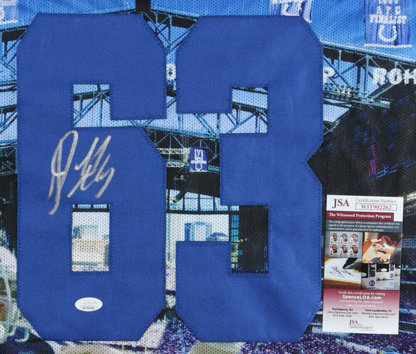 Custom on-field style Photo jersey. Everything is sewn on, size XL. Hand-signed by Jeff Saturday.The lot / autograph(s) includes an official James Spence Authentication (JSA) hologram and matching COA for authenticity purposes. The signing of this item was witnessed by JSA.Authentication: JSA COA
