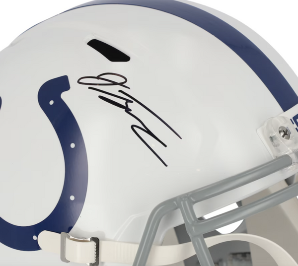 This full size replica speed helmet has been personally hand-signed by Jonathan Taylor. It is officially licensed by the National Football League and comes with an individually numbered, tamper-evident hologram from Fanatics Authentic. To ensure authenticity, the hologram can be reviewed online. This process helps to ensure that the product purchased is authentic and eliminates any possibility of duplication or fraud. MONEY BACK GUARANTEE! If for any reason you are not completely satisfied with the quality or authenticity of your purchase, we will gladly give you a full refund or exchange, whichever you prefer up to 30 days after purchase. Please feel free to e-mail us with any questions. GOOD LUCK BIDDING!!! Authenticator Pre-Certified Authenticator: Fanatics Authenticated History of item: Jonathan Taylor has signed this item in the presence of a representative from Fanatics Authenticated. Describe how you came to possess this item: Super Sports Center is a fully authorized dealer for Upper Deck Authenticated as well as Mounted Memories and Steiner Sports. Other information about you and / or the item: Super Sports Center strives to deliver the most authentic in sports memorabilia from trusted companies like Mounted Memories, Steiner Sports and Upper Deck Authenticated. If it exists, we can find it for you!