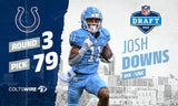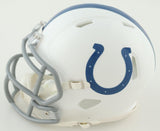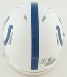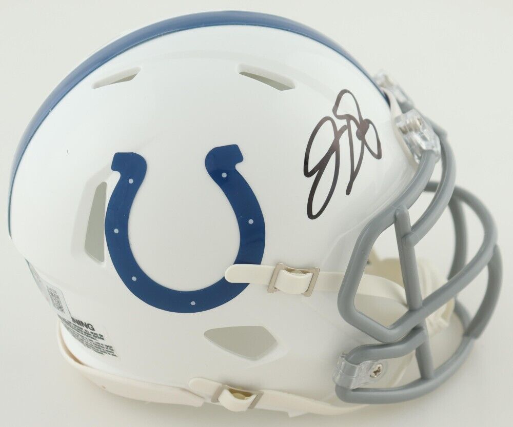 Riddell Indianapolis Colts mini helmet. Hand-signed by 2023 3rd round draft pick, wide receiver, from the University of North Carolina Josh Downs.The autograph includes an official Beckett Authentication Services serially numbered hologram for authenticity purposes.Authentication: Beckett Hologram