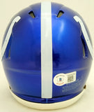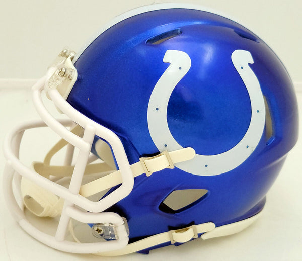 This is an Indianapolis Colts Flash Blue Speed Mini Helmet that has been hand signed by Matt Ryan. The Flash helmets are delicate and may have some marks or scratches on them. This item has been certified authentic by Beckett Authentication (BAS) and comes with their tamper-proof QR Code sticker that can be verified on the Beckett-authentication.com.