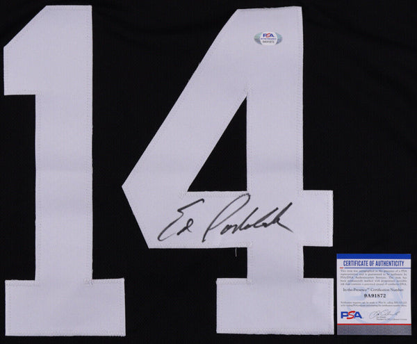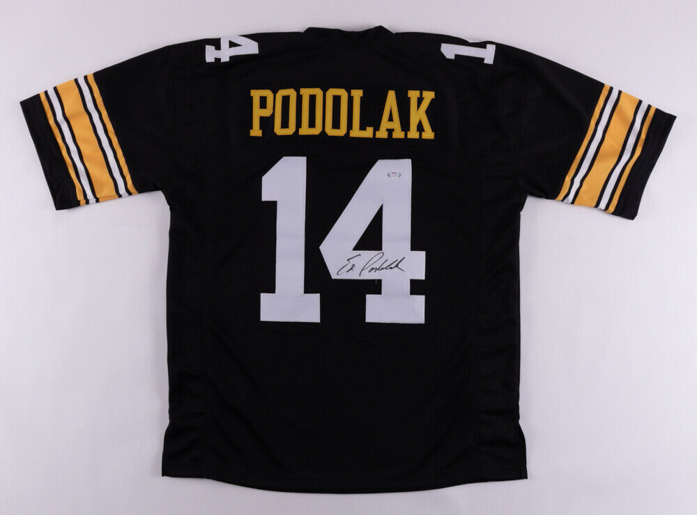 Custom on-field style jersey. Everything is sewn on, size XL. Has been hand-signed by Ed Podolak.The lot / autograph(s) includes an official PSA/DNA hologram and matching COA for authenticity purposes. The signing of this item was witnessed by PSA.Authentication: PSA COA Shop our ebay store / Friendly Confines Collectibles for thousands of different autographed jerseys