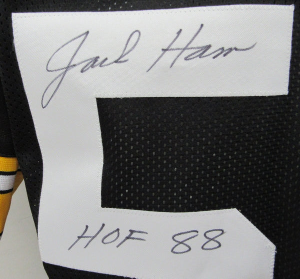 Jack Ham HOF Signed/Inscribed "HOF 88" Black Pittsburgh Steelers Custom Football Jersey Size XL. This jersey is authenticated by BAS/Beckett Witness and includes their Tamper-proof Hologram Sticker.