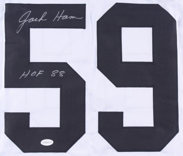 Custom on-field style jersey. Everything is sewn on, size XL. Hand-signed in silver paint pen by Jack Ham (HOF). The lot / autograph(s) includes an official Total Sports Enterprises (TSE) hologram and matching COA for authenticity purposes. Authentication: Total Sports Enterprises COA Shop our ebay store / Confines Collectibles for thousands of different autographed jerseys