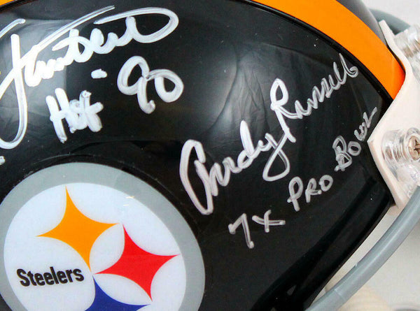 Ham Lambert Russell Autographed Pittsburgh Steelers 63-76 Mini Helmet-Beckett W Hologram *Silver This is a hand autographed helmet of Jack Ham, Jack Lambert, and Andy Russell of the Pittsburgh Steelers. This is a Riddell Football 63-76 TB Mini Helmet. Inscribed with HOF, 7x Pro Bowl and 8x Pro Bowl. This item has a Beckett Witnessed Authentication, which comes with a numbered hologram and a QR code for verification. You can view this item on the Beckett Authentication website, it shows when and where the item was signed. It was signed either at a public autograph appearance or a private signing. This is a stock photo of the item. Although you may not receive this exact item, the item you receive is virtually identical and brand new in great shape.