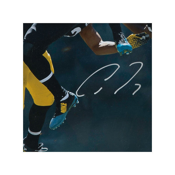 One of the many things that separate great receivers from average ones is the ability to catch balls over the middle. Allen Robinson possesses this toughness. There is not a spot on the football field that he won't catch passes. Hauling in balls in traffic is a specialty for the former Penn State star. He tied for the NFL lead in touchdowns (14) in 2015, and that resulted in a spot in the Pro Bowl for the Jaguars wideout. In this image, Robinson is catching a ball despite the tight coverage of a pair of Steelers defenders. Robinson has signed this limited edition (50) Over the Middle Heat 16" x 20" image in silver paint pen. His signature is deemed authentic by virtue of Upper Deck Authenticated's Five Step Process.