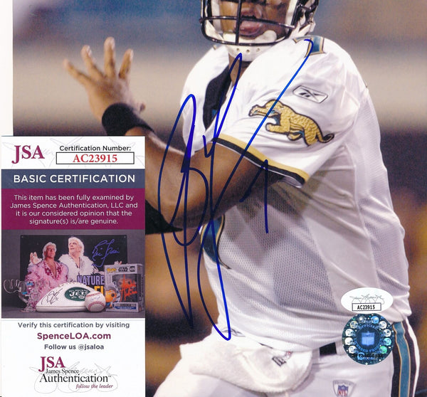 Bryon Leftwich Autographed 8x10 Photo Jacksonville Jaguars. This photo is authenticated by JSA and includes their tamper-proof hologram sticker and Certificate of Authenticity.