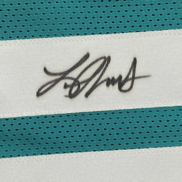 FRAMED Autographed/Signed LAVISKA SHENAULT 33x42 Teal Football Jersey BAS COA The item is professionally framed & matted with two 8x10 photos, measures 33"x42" and is ready to be hung in your man cave! NOTE: COA card will be mounted on the back of the frame, not inside it on top of the jersey as seen in the picture.