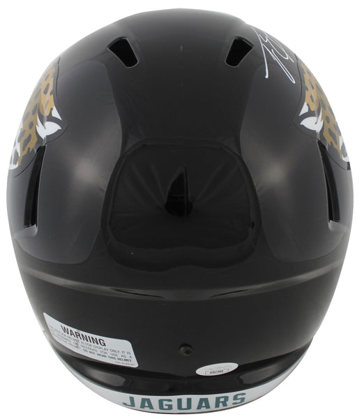 This Autographed Full Size Speed Rep Helmet has been Personally Signed by Travis Etienne Jr. of the Jacksonville Jaguars. This item is 100% Authentic to include a Certificate of Authenticity (COA) / hologram by JSA. We conducted an autograph signing with Travis Etienne Jr. where multiples of the same item were signed. While the photographs are representative of this item, the size, placement and strength of the signature may vary. Each item is hand signed, therefore, each autograph is unique. This item can be verified through JSA.