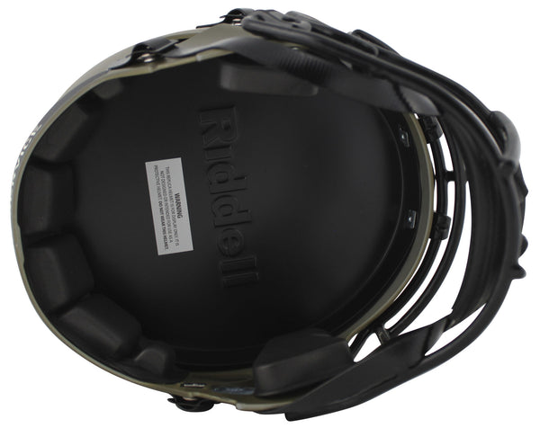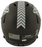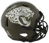 This Autographed Alternate Salute To Service Riddell Full Size Speed Rep Helmet has been Personally Signed by Travis Etienne Jr. of the Jacksonville Jaguars. This item is 100% Authentic to include a Certificate of Authenticity (COA) / hologram by JSA. We conducted an autograph signing with Travis Etienne Jr. where multiples of the same item were signed. While the photographs are representative of this item, the size, placement and strength of the signature may vary. Each item is hand signed, therefore, each autograph is unique. This item can be verified through JSA.