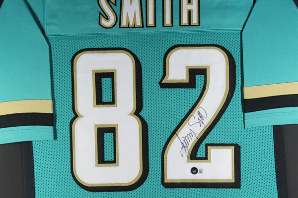 JIMMY SMITH AUTOGRAPHED & PROFESSIONALLY FRAMED PRO-STYLE JERSEY(Occasionally our own stock pictures are used at times due to quantity of framing, all frames will look identical as the one pictured)THE FRAMED JERSEY MEASURES 35"x 44" & COMES WITH THE FOLLOWING:-UV Protected Acrylic-Triple Acid Free Team Colored Matting-2 High Quality 8"x10" Photos-Team LogoEvery framed autographed jersey is accompanied with a tamper-proof hologram on the signed part of the jersey from one of the main authenticators in the industry (JSA, Beckett, PSA, etc.) and can be verified on their corresponding websites to prove authenticity.