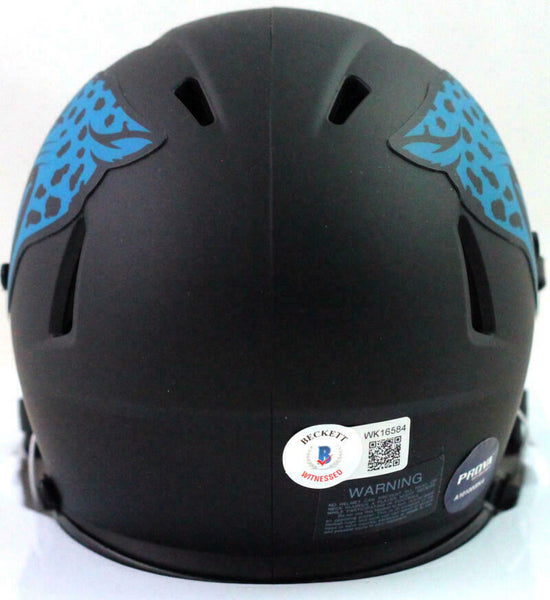 Laviska Shenault Autographed Jaguars Eclipse Speed Mini Helmet- Beckett W*Silver This is a Laviska Shenault of the Jacksonville Jaguars hand autographed Riddell football Eclipse Speed mini helmet. This item has a Beckett Witnessed Authentication, which comes with a numbered and a matching Beckett Certificate of Authenticity. You can view this item on the Beckett Authentication website, it shows when and where the item was signed. It was signed either at a public autograph appearance or a private signing. This is a stock photo of the item. Although you may not receive this exact item, the item you receive is virtually identical, brand new, and in great shape.