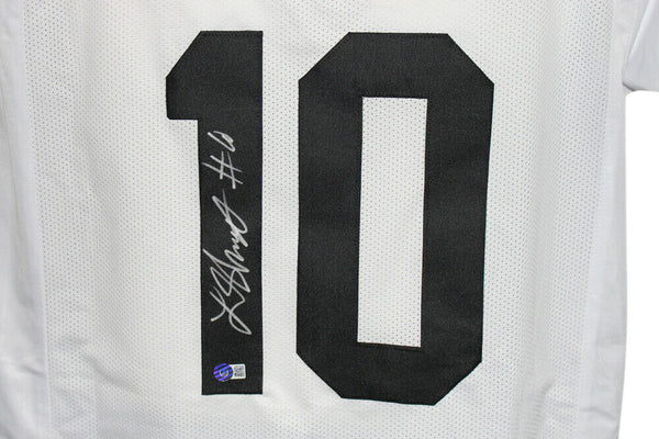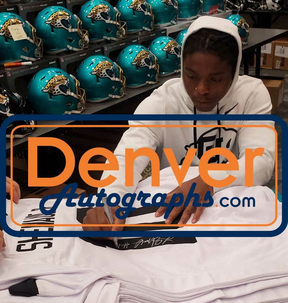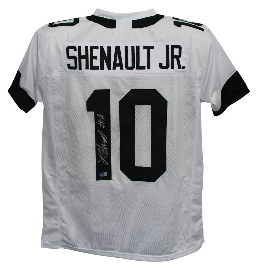Laviska Shenault Autographed/Signed Pro Style White XL Jersey Beckett 34816 The number in the listing title is just an inventory sku for our records and is not the authentication number. The item pictured is a stock photo unless otherwise noted. This is a custom pro style white size XL jersey with sewn on name and numbers that was personally autographed by Laviska Shenault. Includes a certificate of authenticity from Beckett Authentication Services (BAS) and Denver Autographs.