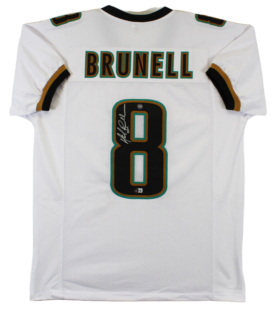 This Autographed White Pro Style Jersey has been Personally Signed by Mark Brunell of the Jacksonville Jaguars. This item is 100% Authentic to include a hologram by Beckett Authentication Services. This item will come with an affixed Beckett Authentication Services (BAS) authentication sticker, which includes a scannable QR code to verify authenticity. Please note that Beckett no longer provides serial-numbered COA cards, and the attached BAS sticker will serve as the complete authentication for this item. This is a BAS Witnessed Protection Program item which means a Beckett Authentication Service representative was present when this item was being signed. We conducted an autograph signing with Mark Brunell where multiples of the same item were signed. While the photographs are representative of this item, the size, placement and strength of the signature may vary. Each item is hand signed, therefore, each autograph is unique. This item can be verified through BAS Witnessed. This is a X-Large sized, non-branded, custom-stitched Jersey.