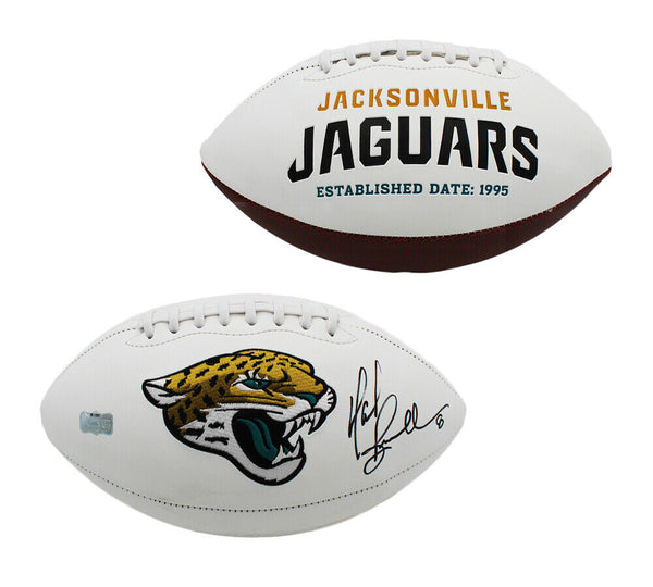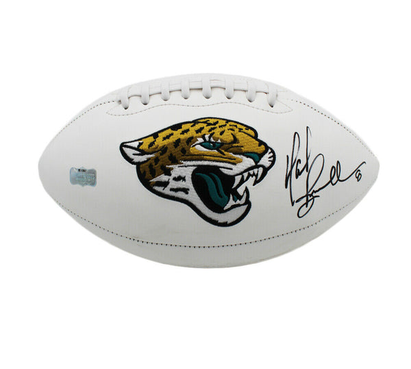 A Jacksonville Jaguars Embroidered White NFL Football hand signed by Mark Burnell. The item and signature are in excellent condition. Mark was drafted into the NFL in 1993, Round:5,Pick:118. Mark is a Super Bowl Champion (XLIV). Mark 3xPro Bowl (1996,1997,1999). Mark is a NFL passing yard leader (1996). Mark is Pride of the Jaguars. Mark is National Champion (1991). AUTHENTICATION: The item is accompanied by a Certificate of Authenticity - Serial Numbered and Databased Hologram - Picture of Mark from the Signing