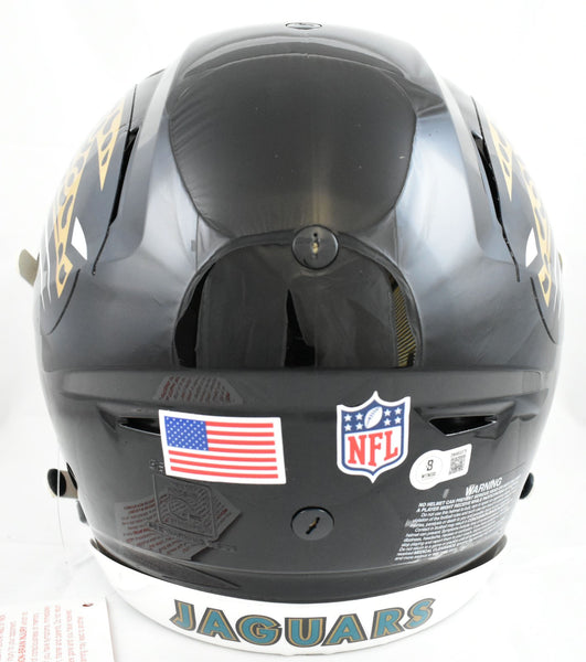 This is a Travis Hunter of the Jacksonville Jaguars autographed Riddell football full size 95-12 SpeedFlex Authentic helmet. This item has a Beckett Witnessed Authentication, which comes with a numbered hologram and a QR code for verification. You can view this item on the Beckett Authentication website, and it shows when and where the item was signed. It was signed either at a public autograph appearance or a private signing. This is a stock photo of the item. Although you may not receive this exact item, the item you receive is virtually identical, brand new, and in great shape. *Autograph location may vary* This is a Travis Hunter of the Jacksonville Jaguars autographed Riddell football full size 95-12 SpeedFlex Authentic helmet. This item has a Beckett Witnessed Authentication, which comes with a numbered hologram and a QR code for verification. You can view this item on the Beckett Authentication website, and it shows when and where the item was signed. It was signed either at a public autograph appearance or a private signing. This is a stock photo of the item. Although you may not receive this exact item, the item you receive is virtually identical, brand new, and in great shape. *Autograph location may vary*