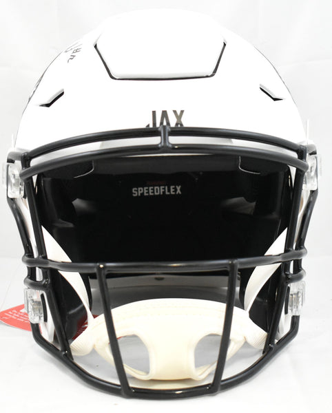 This is a Travis Hunter of the Jacksonville Jaguars autographed Riddell football full size Alternate 2024 SpeedFlex Authentic helmet. This item has a Beckett Witnessed Authentication, which comes with a numbered hologram and a QR code for verification. You can view this item on the Beckett Authentication website, and it shows when and where the item was signed. It was signed either at a public autograph appearance or a private signing. This is a stock photo of the item. Although you may not receive this exact item, the item you receive is virtually identical, brand new, and in great shape. *Autograph location may vary* This is a Travis Hunter of the Jacksonville Jaguars autographed Riddell football full size Alternate 2024 SpeedFlex Authentic helmet. This item has a Beckett Witnessed Authentication, which comes with a numbered hologram and a QR code for verification. You can view this item on the Beckett Authentication website, and it shows when and where the item was signed. It was signed either at a public autograph appearance or a private signing. This is a stock photo of the item. Although you may not receive this exact item, the item you receive is virtually identical, brand new, and in great shape. *Autograph location may vary*