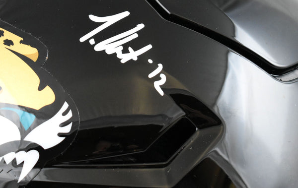 This is a Travis Hunter of the Jacksonville Jaguars autographed Riddell football full size Speed Flex Authentic helmet. This item has a Beckett Witnessed Authentication, which comes with a numbered hologram and a QR code for verification. You can view this item on the Beckett Authentication website, and it shows when and where the item was signed. It was signed either at a public autograph appearance or a private signing. This is a stock photo of the item. Although you may not receive this exact item, the item you receive is virtually identical, brand new, and in great shape. *Autograph location may vary* This is a Travis Hunter of the Jacksonville Jaguars autographed Riddell football full size Speed Flex Authentic helmet. This item has a Beckett Witnessed Authentication, which comes with a numbered hologram and a QR code for verification. You can view this item on the Beckett Authentication website, and it shows when and where the item was signed. It was signed either at a public autograph appearance or a private signing. This is a stock photo of the item. Although you may not receive this exact item, the item you receive is virtually identical, brand new, and in great shape. *Autograph location may vary*