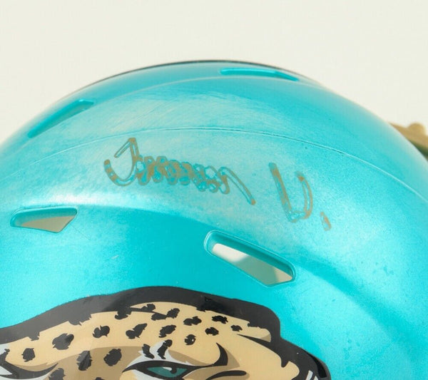 Riddell Jacksonville Jaguars speed mini helmet. Hand-signed and inscribed by Travon Walker.The lot / autograph(s) includes an official Beckett Authentication Services serially numbered hologram for authenticity purposes.Authentication: Beckett Hologram