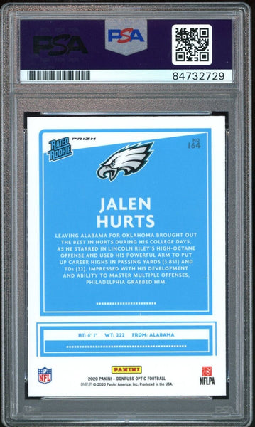 2020 Donruss Optic Holo Rookie RC Jalen Hurts On Card PSA/DNA Auto GEM MINT 10