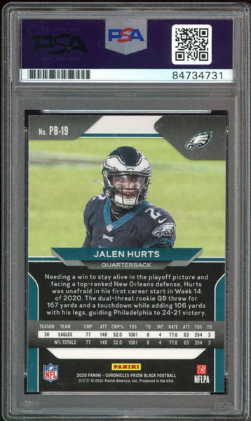 2020 Prizm Black #PB19 Jalen Hurts RC On Card Green Ink PSA/DNA Auto GEM MINT 10