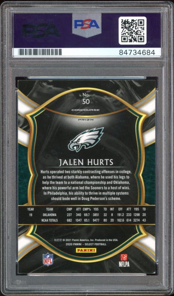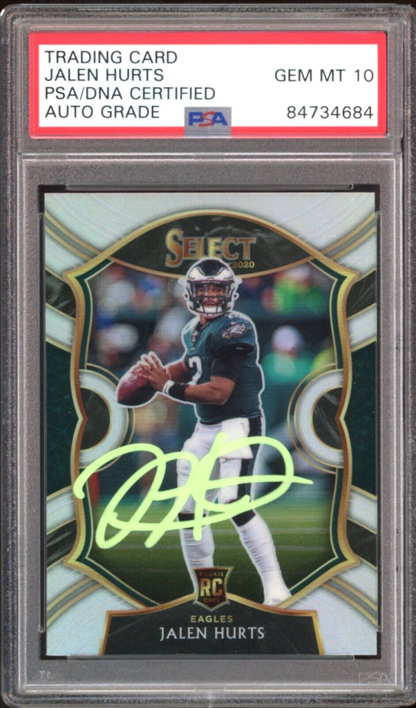 2020 Select Concourse Silver Jalen Hurts RC Green Ink PSA/DNA Auto GEM MINT 10